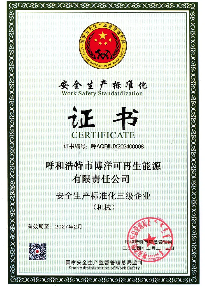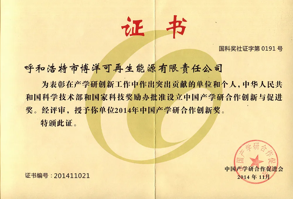 В 2023 году компания была признана Комитетом по науке и технологиям города Хух-Хото «Международным совместным инновационным консорциумом по технологиям использования новых источников энергии и интеллектуального водосбережения в сельских и животноводческих районах».