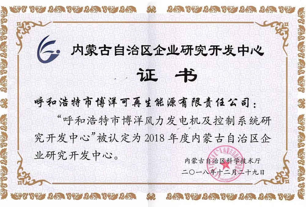 В 2018 году «Научно-исследовательский центр по ветрогенераторам и системам управления Боян» был признан Департаментом науки и технологий автономного района корпоративным научно-исследовательским центром уровня автономного района.