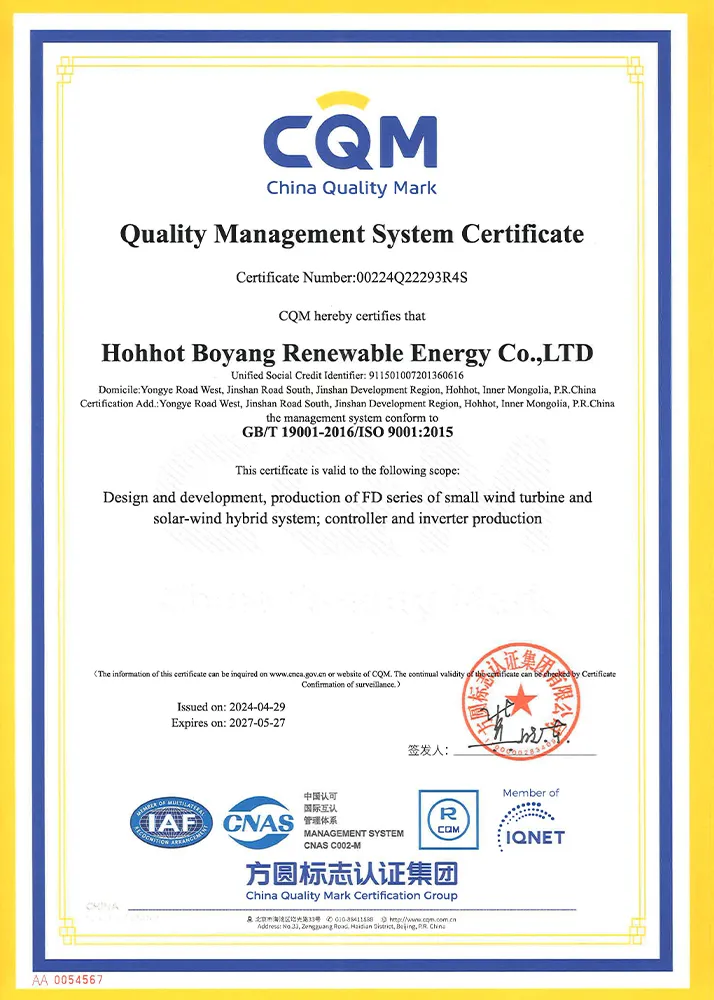 ООО Хух-Хото Боян Возобновляемые Источники Энергии было основано в 2001 году. Являясь национальным высокотехнологичным предприятием и демонстрационным малым и средним предприятием "специализации, тонкой специализации, уникальности и инновационности" на региональном уровне, компания профессионально занимается производством ветрогенераторов и контроллеров-инверторов, а также проектированием, разработкой, производством и продажей оборудования для возобновляемой энергетики и сельскохозяйственной и животноводческой техники. Зарегистрированный уставный капитал предприятия составляет 200 миллионов юаней. Штаб-квартира компании расположена в зоне развития Цзиньшань города Хух-Хото, площадь заводской территории составляет 20 000 квадратных метров. В состав компании входят три дочерних предприятия: ООО Хух-Хото Дэлисинь Производство Сельскохозяйственной Техники, Филиал Боян Шанду и ООО Сунид-Цзоци Боян Производство Оборудования.